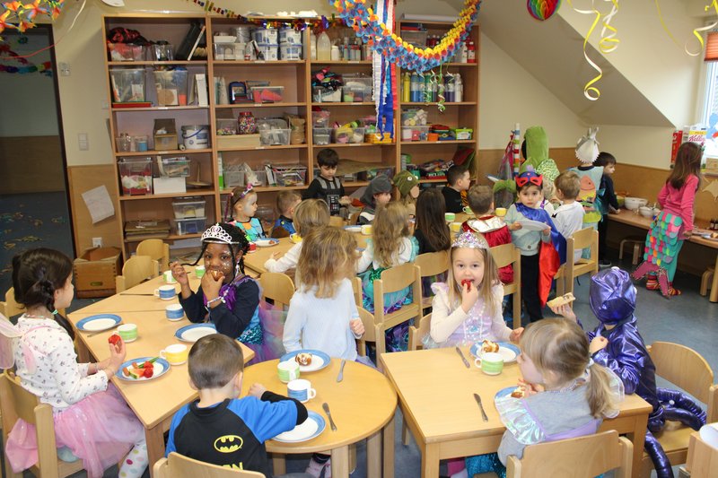 In den bunt dekorierten Gruppen wurde getanzt, gefeiert und Partyspiele gespielt. Bei einem ausgiebigen, von den Kindern selbst gewählten, Frühstück wurde sich gestärkt.