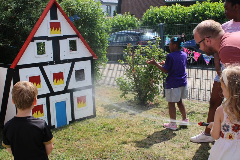 Am 28. Juni war bei uns richtig was los - unser Sommerfest fand statt. Im Garten warteten viele tolle Stationen auf die Kinder: u.a. die Farbschleuder, Dosenwerfen, Feuer löschen, Kinderdisco und ein lustiger Wasserbomben-Parcours sorgten für jede Menge Spaß. Wer durch das bunte Blumenspalier ging, bekam eine Stempelkarte und wer fleißig Stempel sammelte, durfte sich am Ende über kleine Preise freuen.